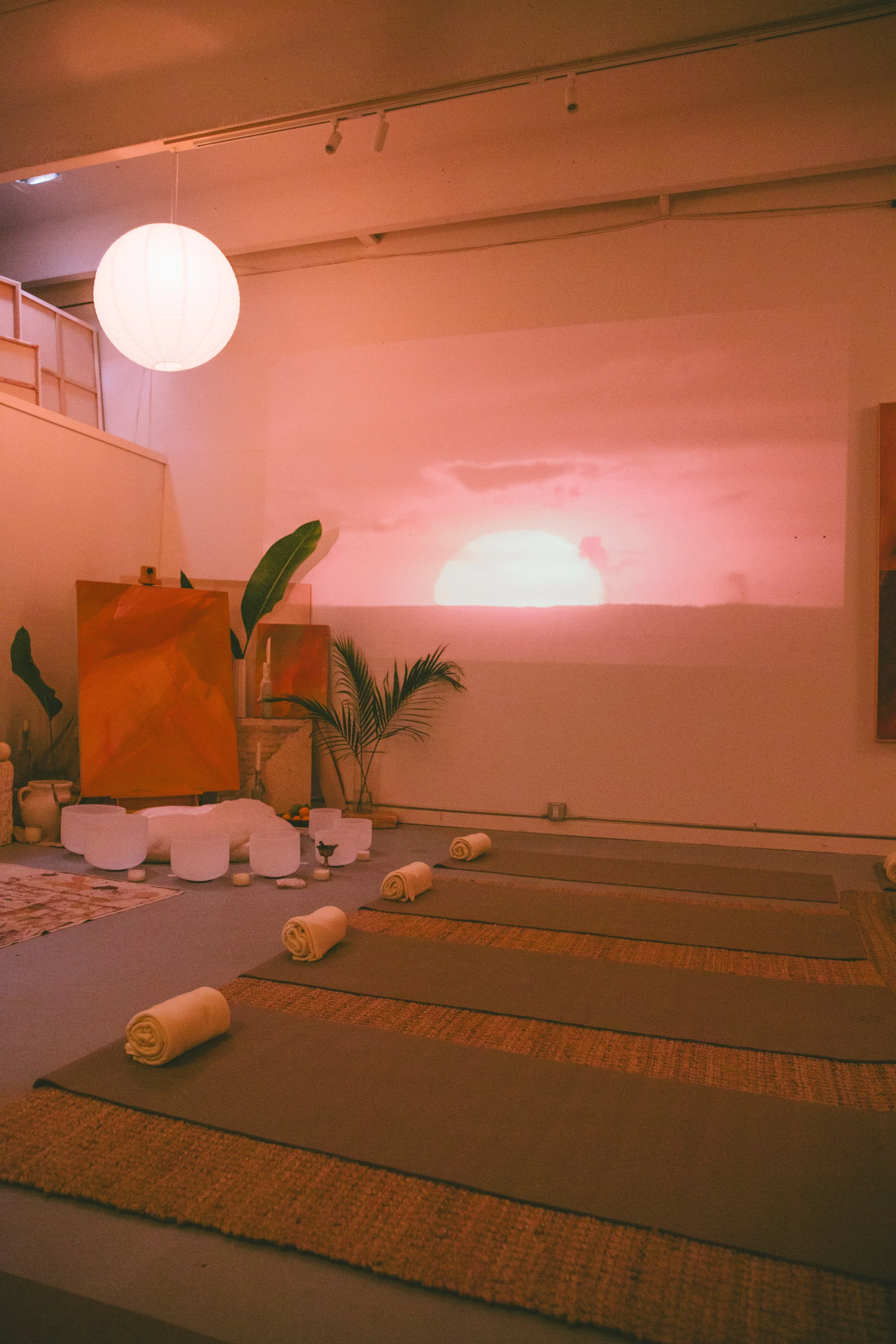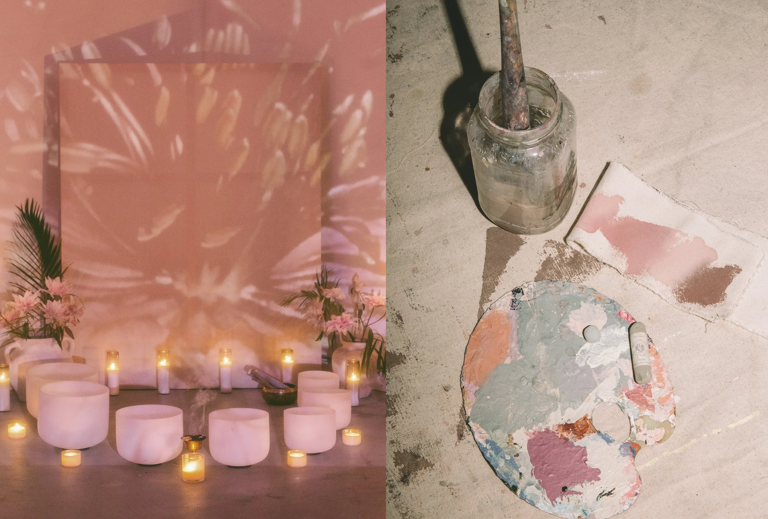 These private sessions are rooted in the spirit of the atelier—an intimate, working studio environment where process, observation, and material come forward. The experience begins with sound, using vibration, breathwork, and guided meditation to settle the nervous system and create space within the body and mind, before transitioning into a hands-on intuitive painting practice.
